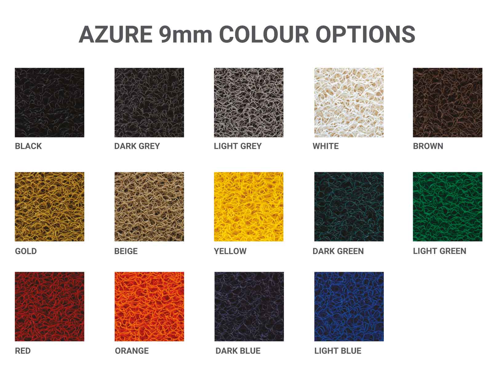 Choice of 14 colours for the base colour and carpet printing colours.